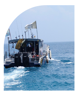 Meet Terminal 53—our bold, colourful, and trusty vessel that carried us through five days of sea adventures around Pulau Perhentian. More than just a boat, it became our floating lab, office, kitchen, and rest stop all rolled into one.