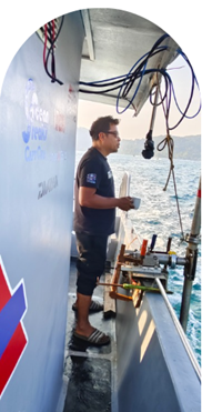 DAY 3: ROPE, READINGS & ROTI! Things got a bit rocky with stronger waves, but our crew was unfazed. We collected oceanographic readings using CTD sensors while enjoying freshly packed nasi goreng and fried chicken. Fieldwork fuel at its best!
