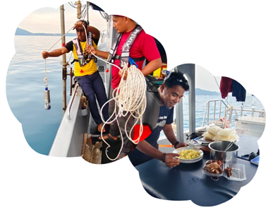 Lunch with a View: Fuelling the Science Nothing beats a good plate of nasi goreng after hours under the sun—especially when served right on the deck with the sea as our dining hall. Meals were full of smiles, stories, and shared laughter that kept our spirits high.